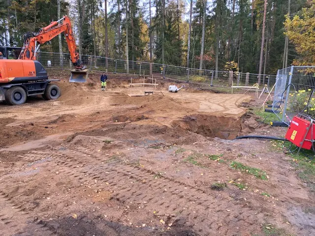 Dialogen med föreningen kring den nya byggnaden började för cirka fyra år sedan och själva produktionsarbetet på plats startade i september i år. Det första steget var att riva den befintliga byggnaden från 60-talet och fälla kringliggande träd. Nästa steg är att påbörja markarbetet. Linus Leino, projektledare på HZ bygg, räknar med att skalet kommer att vara färdigt vid årsskiftet. Men byggtiden är kort; redan i juni 2026 drar föreningens sommarverksamhet i gång och då ska byggnaden stå helt klar.